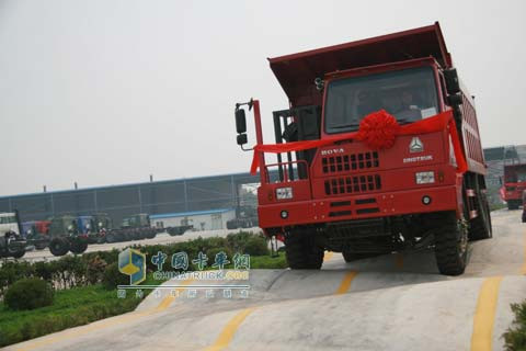 4. The HOWO 70 mining dump truck is equipped with the new front axle assembly which is independently developed by Sinotruk. It employs integrally cast I-beams, Φ500×210 reinforced type brake, and other assemblies or parts that are suitable for mine vehicles.
